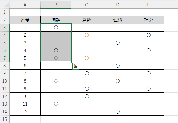 B3〜B14 だけを選択する方法:Shift+Tab+右矢印