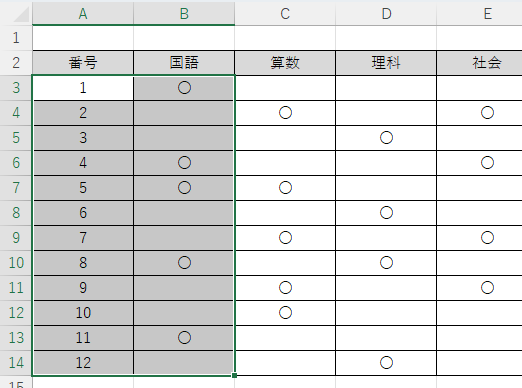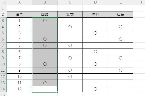 - B列も B3〜B14 に値が入っている