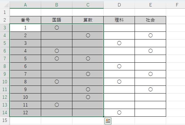 → A3 から A14 まで一気に選択されます