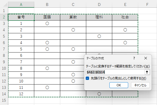 - 「OK」を押すだけでテーブル化完了