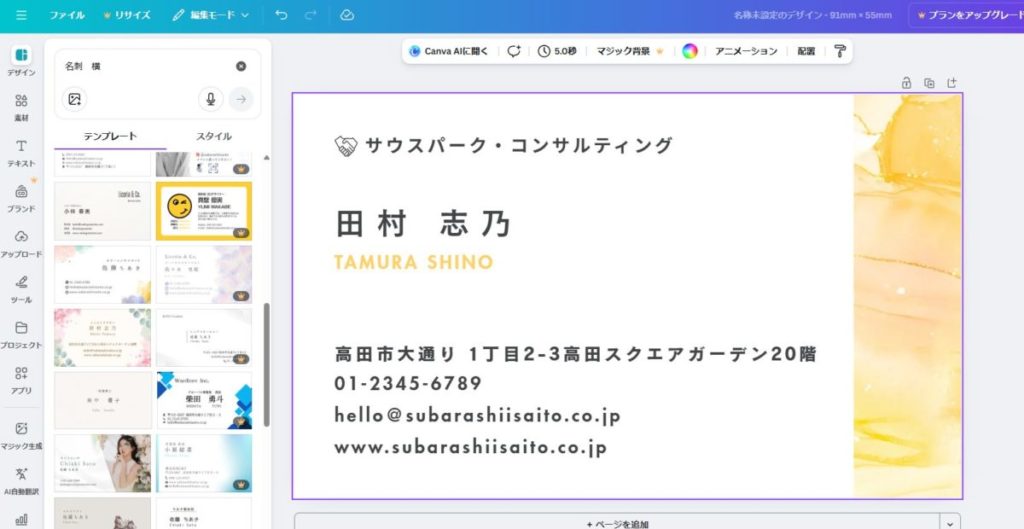Canvaとラクスルを使えば、パソコン初心者の方でも、30分ほどで名刺が完成します。